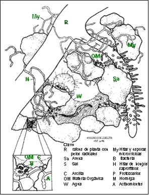 Las raíces de las plantas son verdaderas exploradoras de los vericuetos del suelo. Con su estructura ramificada y la presencia de pelos absorbentes, lentamente van penetrando la estructura del suelo en la búsqueda de zonas ricas en agua y en nutrientes. Este proceso, junto con la actividad fotosintética de las hojas, es esencial para la fijación de la materia y la energía en moléculas de mayor complejidad que son el principio de toda cadena alimentaria. Sin embargo, gran parte de estos procesos en la raíz solo son posibles por la existencia de un microscópico ecosistema bajo tierra denominado rizosfera.